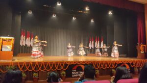 For the grand inaugural ceremony of our 26th edition of NCU’s Inter-University Annual Techno-Cultural Festival “Momentum 2023”, a captivating performance was presented by NCU students on “Lambadi- Telangana Folk Dance” under Ek Bharat Shreshtha Bharat Club- A UGC Initiative on 3rd November, 2023 that truly represents the vibrant culture and talents within our college community. To celebrate the Bathukamma Festival, Bathukamma Lambadi dance was the major attraction and the team of 8 students performed. Bathukamma means “mother of life” or “mother live on” with bathuku meaning life and amma meaning mother. Lambadi dance is a folk dance of the Banjara tribe. Also known as the Banjara dance. It is a vibrant and energetic traditional dance form that holds a special place in the cultural heritage of the region. Lambadi dance is a captivating dance form that reflects the colorful and dynamic culture of the Lambadi community. Its rich symbolism, and connection to the community’s history makes it a significant part of the cultural tapestry of Telangana The event was coordinated by Dr Anshu and Dr Shrutimita Mehta.